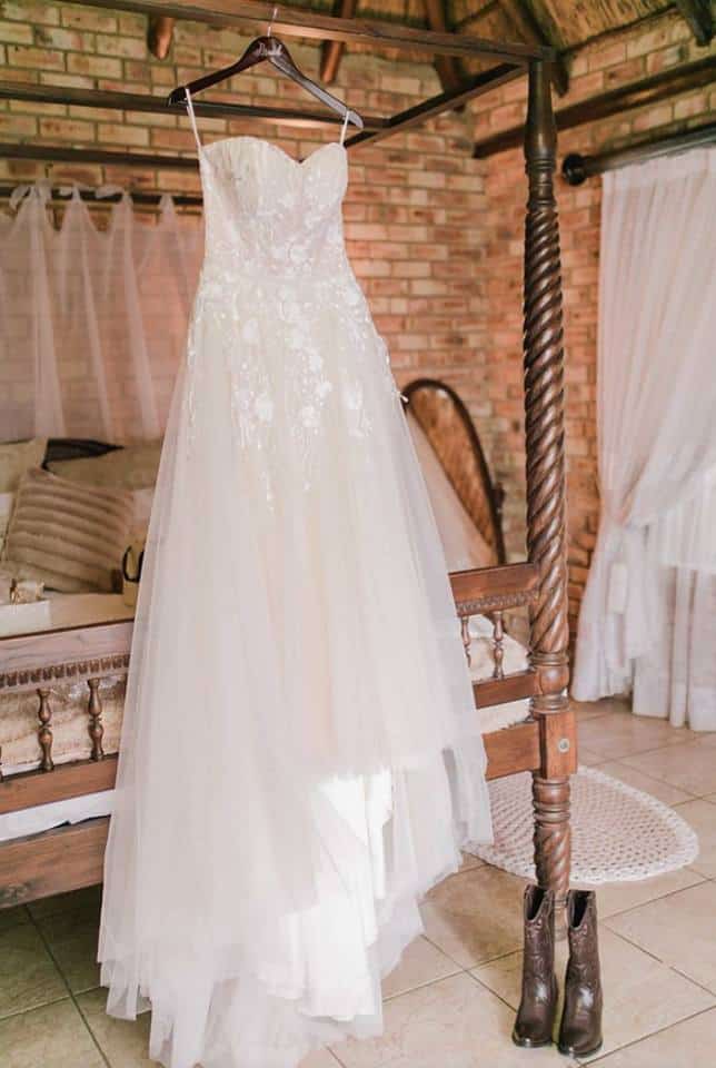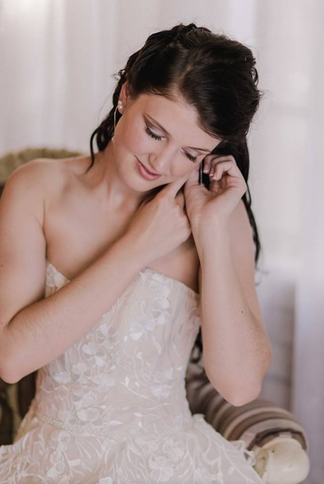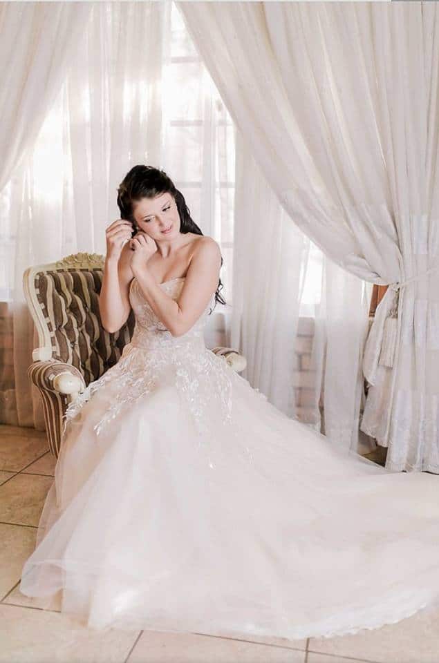 Beautiful soft Blush Pink Elena Morar A line Wedding dress.