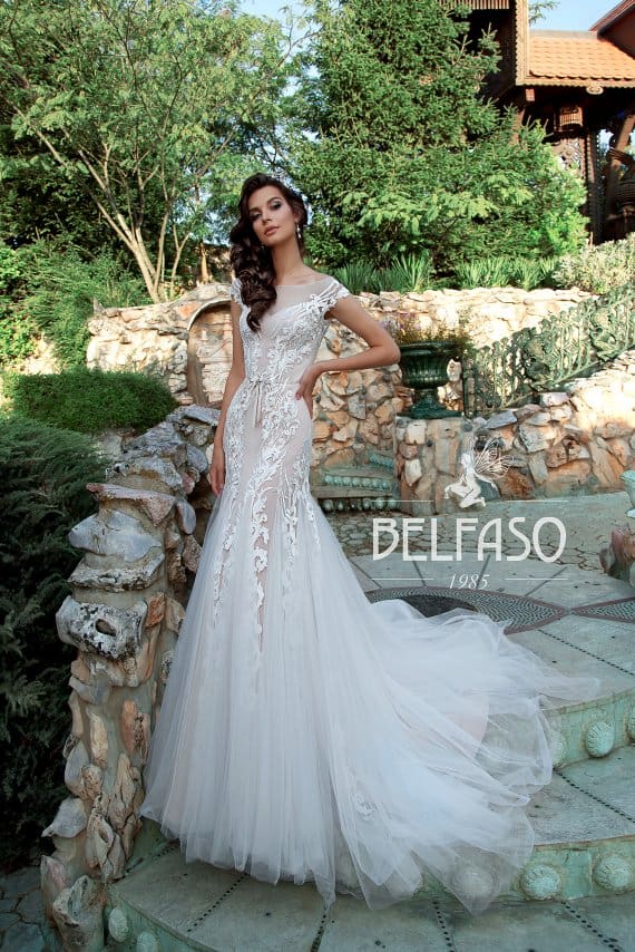 Illution neckline, lace dress with tulle inserts