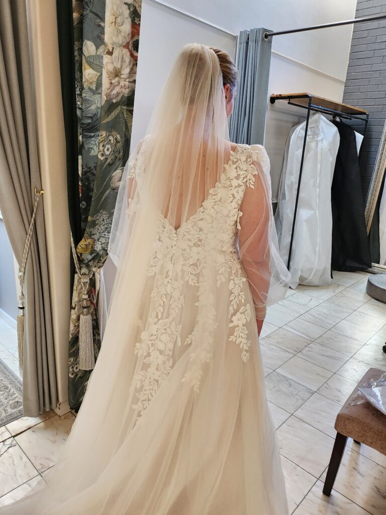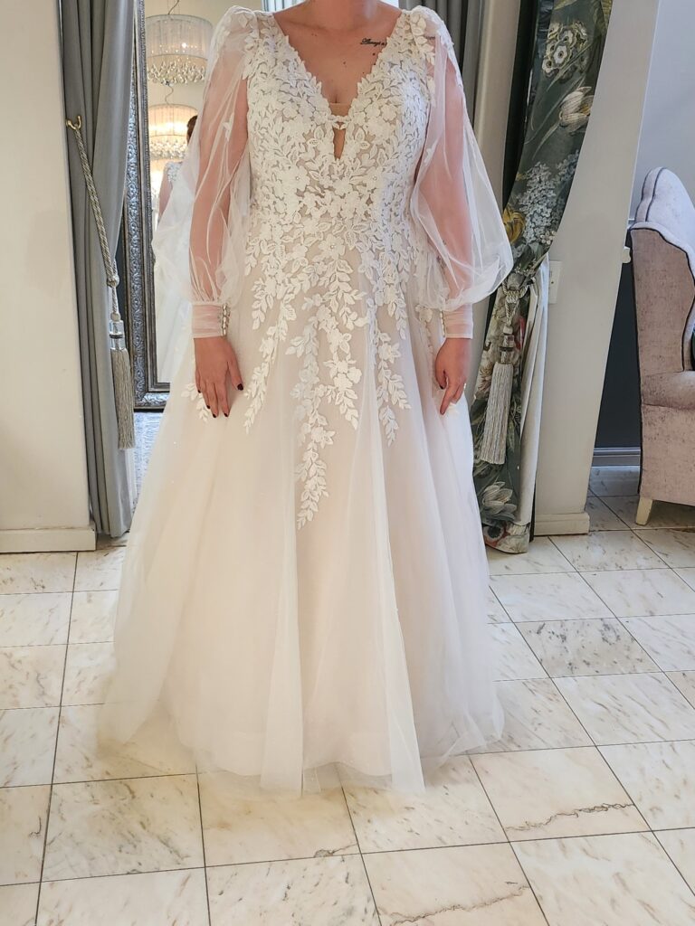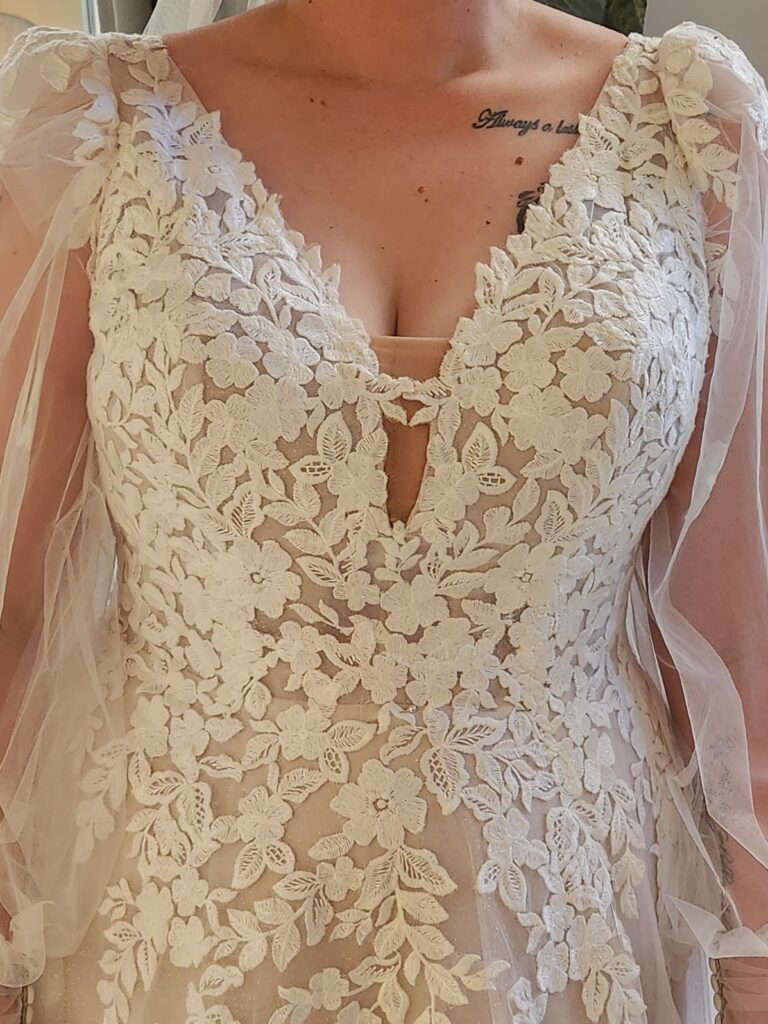 This amazing dress , truly makes you feel like a princess. It has been altered and boning added in the middle.