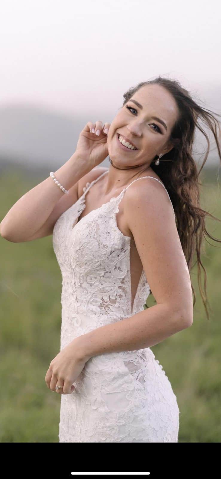 This beautiful classic, curve-hugging dress, with a touch of sexy elegance, vintage floral embroidered and chantily lace, and hint of sparkle with a delicately beaded back is waiting to capture it's new owner. I reside in Fourways. The dress and veil was dry cleaned the day after the wedding. Measurements on the wedding day (all in cm at the widest part of each area) Bum - 92 Hips - 86.0 Tummy - 78.4 Left thigh - 55.5 Right thigh - 55.8 Under boob - 71 Waist - 64 Right calf - 34.6 I am 1.67 and wore 8,5cm heels I would say you have a few cm leeway on either side if you wish to alter the dress If your breasts are bigger than mine - then where I made it smaller for my cup size (32B) it can be made bigger as the lady didn’t cut the fabric so that it can be adjusted for someone else. Dress includes the veil. Honestly this dress has the perfect mix of every element - see-through, lace, glitter, elegance, train, like it’s a bit of everything which is why I loved it! Best of all worlds. See more details of this beautiful design. https://www.enzoani.com/en/collections/blue-by-enzoani/nini