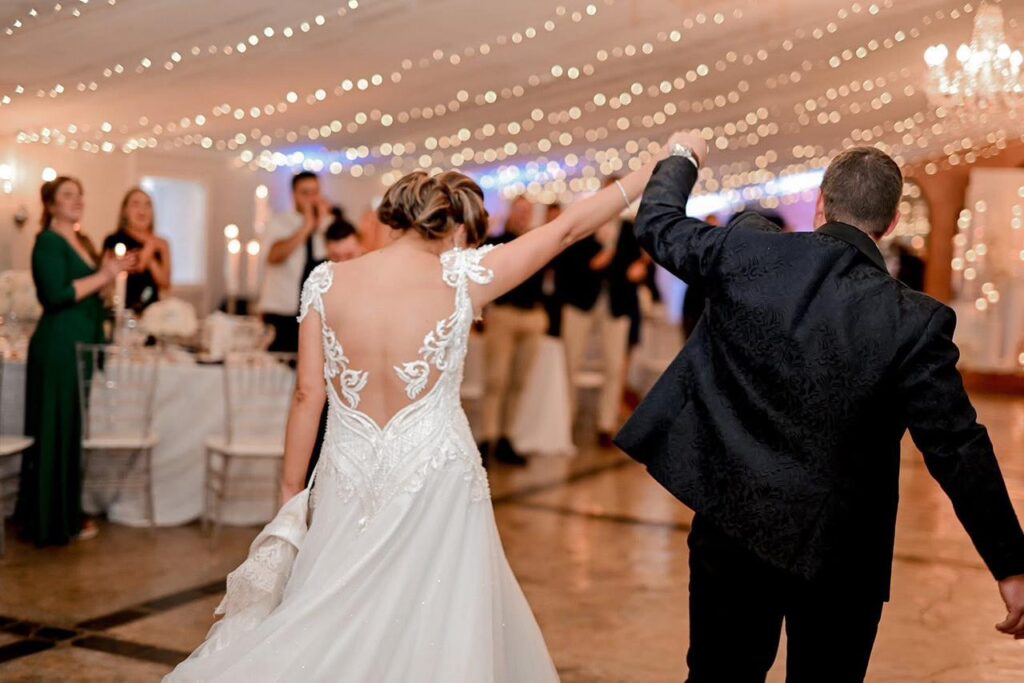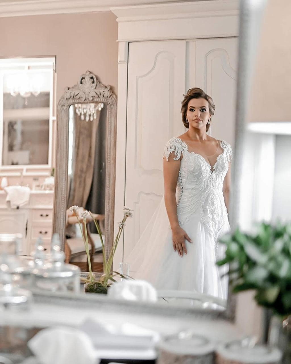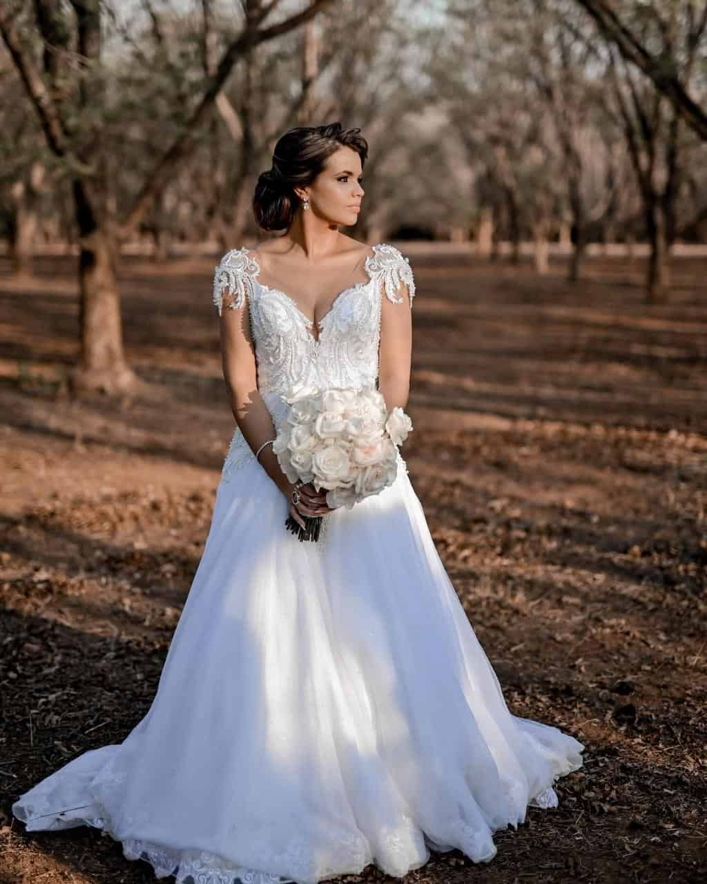 Beautiful wedding dress with hand stitched Swarovski crystal beading.
