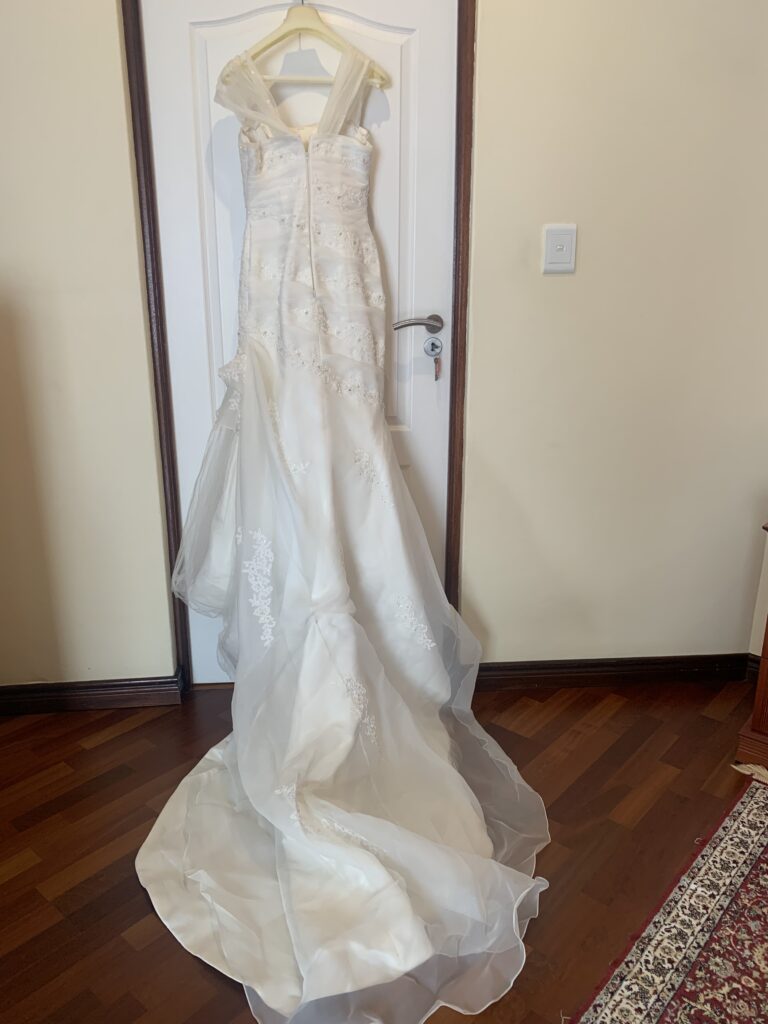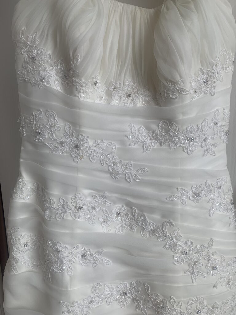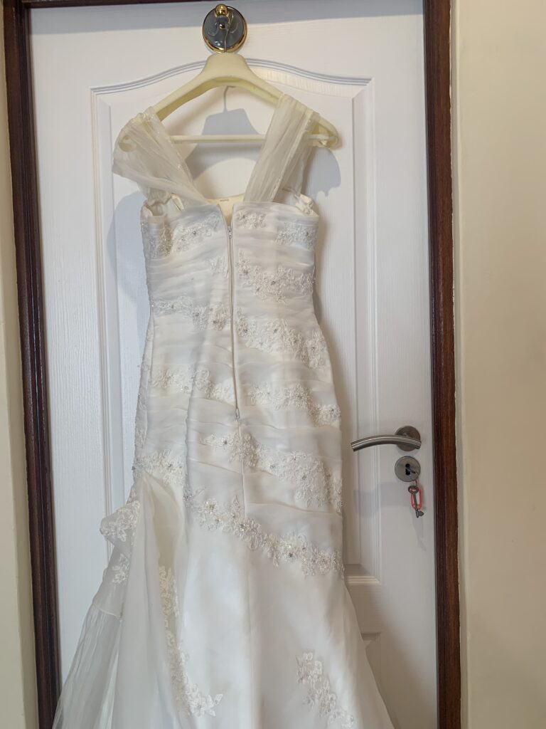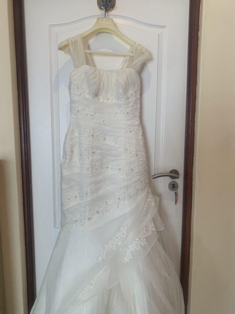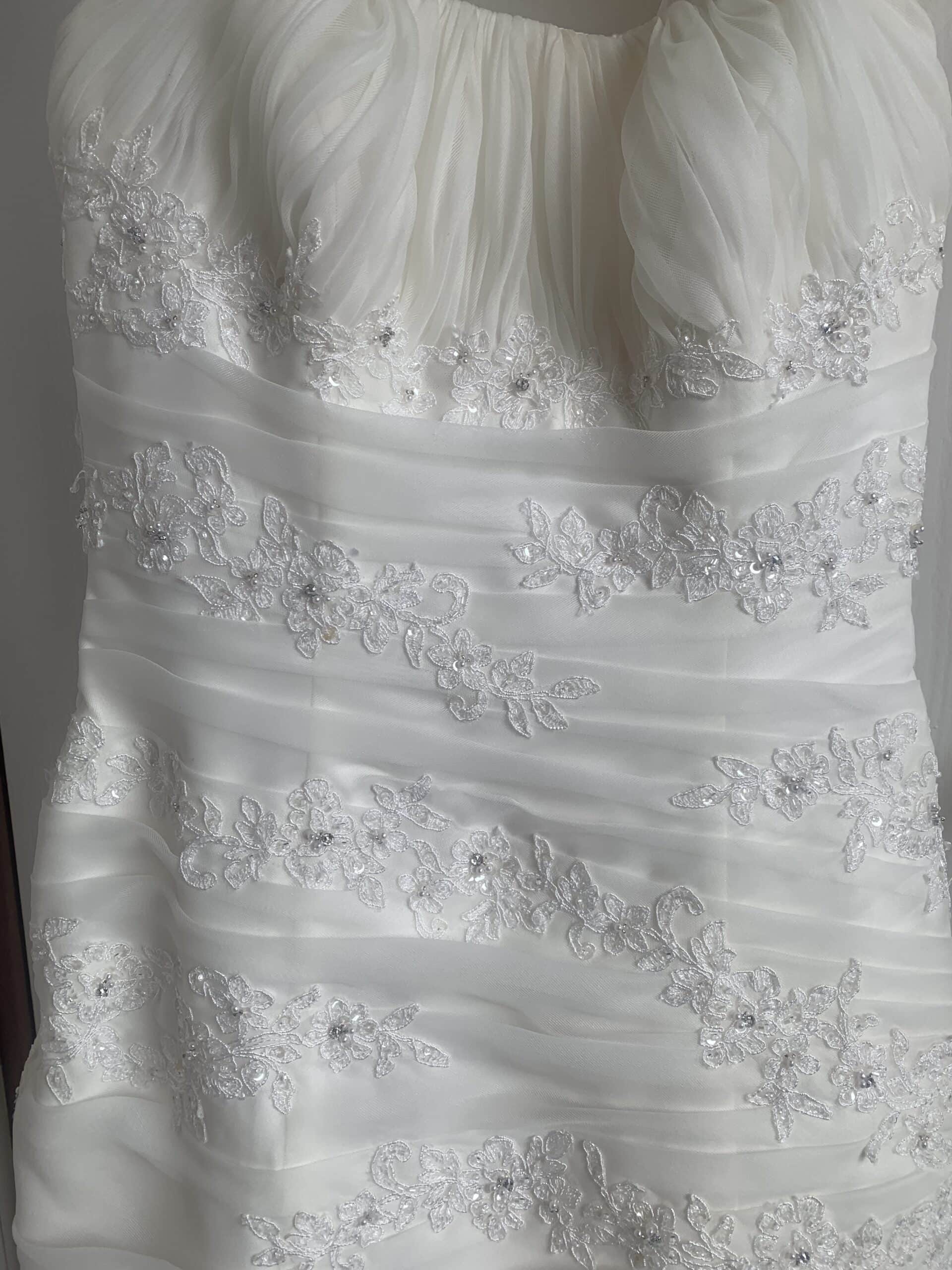 Size 32/34 wedding dress is pristine condition. Ideal height between 152- 155 cm