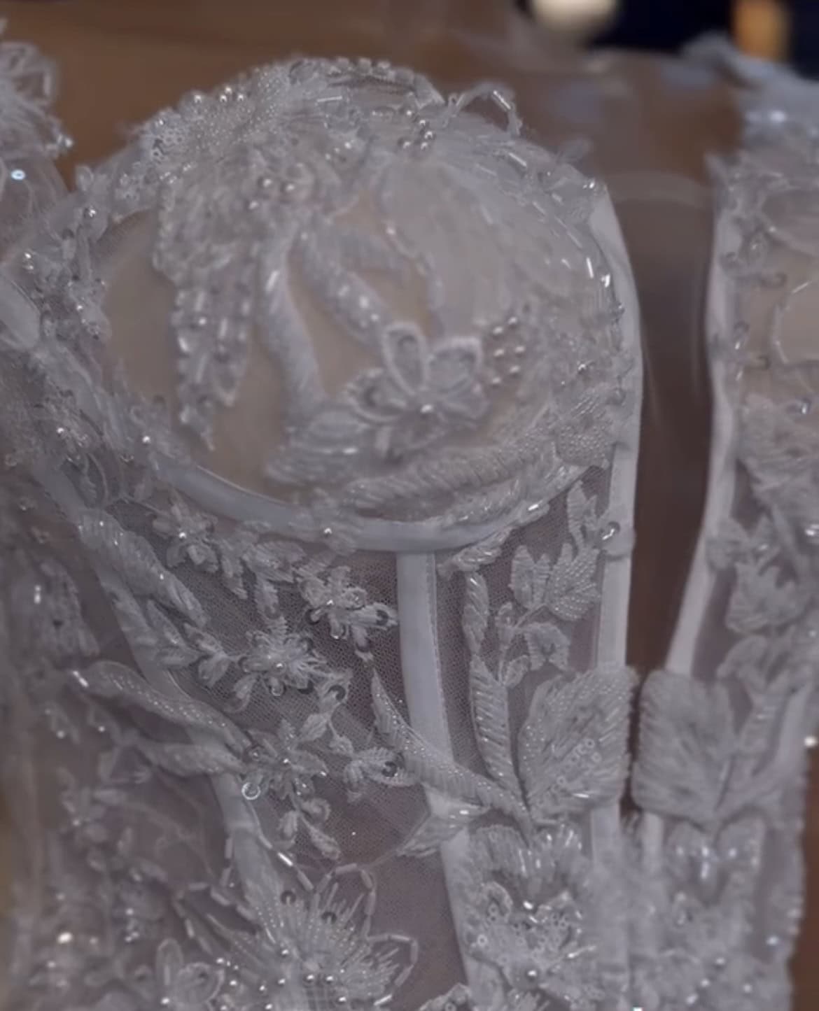 This dress embodies sophistication and a celebration of Italian craftsmanship, making it a stunning centerpiece for the bride on her special day.
