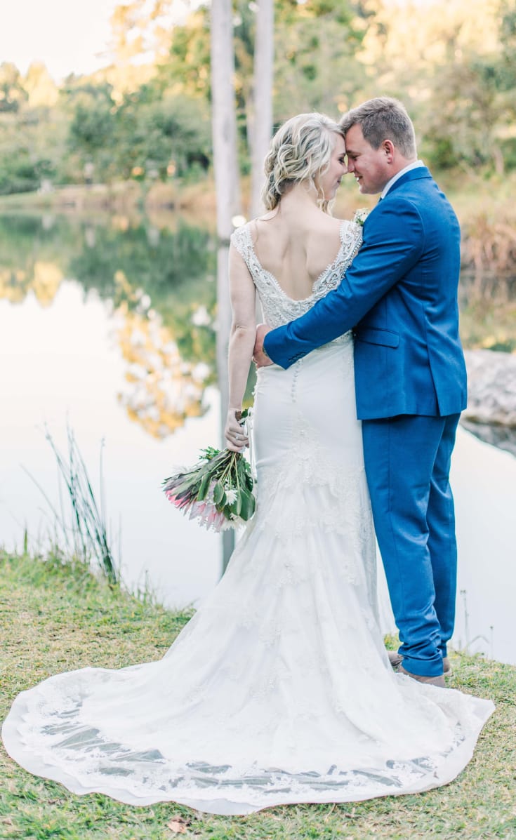 Breathtaking wedding dress that comes with a veil. A magnificent creation imported from Italy. Classic, elegant and sophisticated, this dress is the epitome of femininity. A fitting bodice, smooth chiffon skirt, wedge shaped train and fine French lace form the basis of this stunning design. It's magical quality will transform you into a princess and your wedding day into a fairy tale.