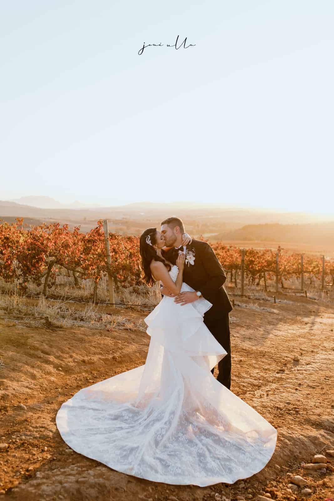 Two-in-one dress. This dress includes a fitted Anna Georgina dress, with a gorgeous corset. It is fitted and has beautiful lace details. This Paulina dress shows off one's curves and it is extremely elegant. The overskirt is a separate piece which adds an extra extravagance to this versatile bridal look. It is one in a million and made me feel like a princess.