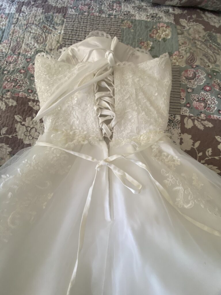 I'm selling a beautiful wedding dress that unfortunately never got to see its day out. This dress is brand new and unworn, perfect for making your special day unforgettable.